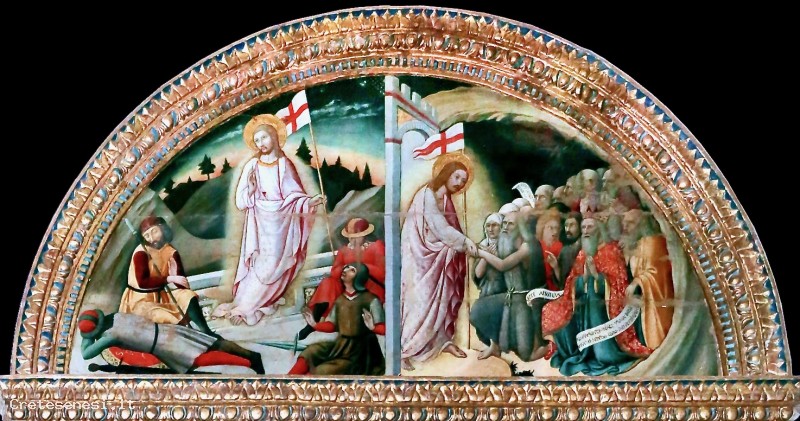 Nella lunetta, invece, sono rappresentati la Resurrezione e la Discesa di Cristo al Limbo.