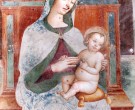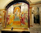 Di questo bellissimo affresco, eseguito a più mani, come appare chiaro, anche da una visione diretta, è abbastanza certa l'attribuzione ad artisti umbri. Secondo recenti studi, infatti la Madonna con Bambino, potrebbe essere di mano del Pinturicchio. Ma ciò che colpisce a prima vista è il volto adolescente e raffinato del giovane Sant'Ippolito, con mantello e spada, l'unico che si rivolge verso l'osservatore.