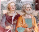 Ebbene dalla sovrapposizione dei tratti somatici, tra questo viso e alcuni autoritratti si nota la somiglianza alquanto stupefacente con Raffaello; basti vedere la forma degli occhi, il profilo del naso, la linea del mento o il contorno del volto. Ma perché un affresco così pregevole, in una piccola pieve di provincia? La presenza di Raffaello a Siena risulta documentata, in quanto Pinturicchio invitò Raffaello, ancorchè diciassettenne ma già magister, a collaborare agli affreschi della Libreria Piccolomini, interna al Duomo di Siena.