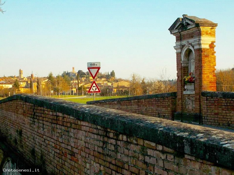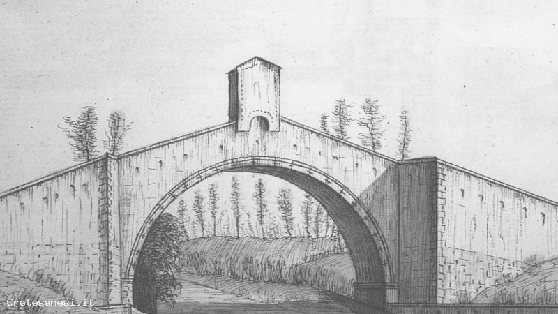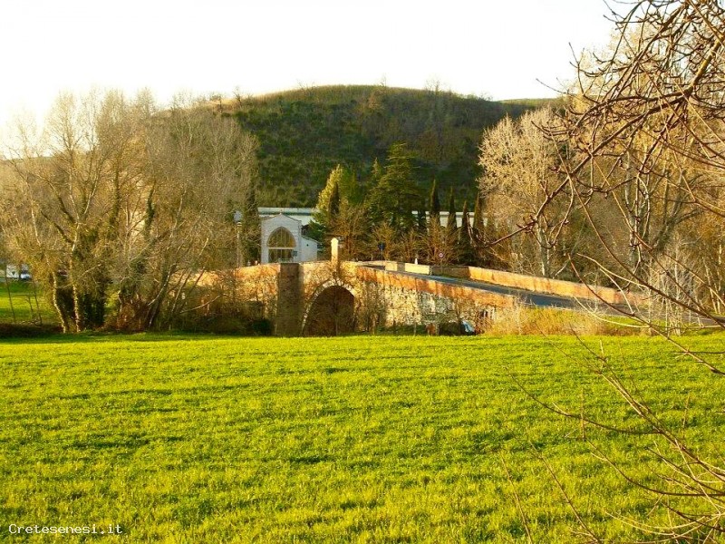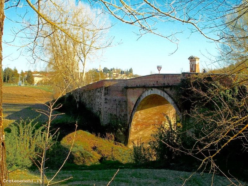 II ponte sull'Ombrone congiunge il paese di Asciano con parte del suo territorio attraverso l'antica via Lauretana, che collegava Siena alla Santa Casa di Loreto.