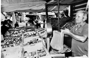 Alberto Batignani, nel suo negozietto: NATURA e DELIZIE, intento a servire una cliente che...