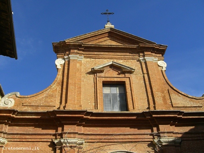 L'edificio fu costruito nel XIV secolo e completamente ristrutturato nel 1705. Dell'arredo originario restano oggi nella chiesa poche opere: una tavola con Madonna in trono col Bambino e due angeli, del 1450 circa, di Matteo di Giovanni, e un affresco con l'Incoronazione della Vergine di un ignoto artista senese del primo Quattrocento. Della seconda metà del XV secolo è un'altra tavola con Madonna in trono col Bambino e santi del senese Pietro di Francesco Orioli.