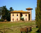 La torre, dotata come si è detto di accesso dal balcone al pian terreno, conserva la suo interno la stretta scala in legno a quattro rampe che sale fino al belvedere superiore, aperto su tutti i lati dalle finestrature tripartite e da cui si gode lo splendido, vasto panorama della campagna di Buonconvento.
