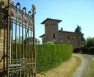 Di fianco alla torre, sulla facciata verso la strada, il balcone, sostenuto da due pilastri marmorei smezzati da un taglio e recanti nella zona superiore una fascia in ferro battuto con l'iniziale del proprietario, si qualifica invece come un "compiuto pezzo Art-Nouveau" (FRANCHINA, s.d.) per la moderna trascrizione di motivi classici - i triglifi e le metope sulla cornice del parapetto in marmo -, per la decorazione affidata a mattonelle in ceramica rettangolari e quadrate, per la semplificazione in mensoline a foglie dei capitelli dei pilastri e soprattutto per le slanciate proporzioni di questi ultimi e l'uso disinvolto della modanatura. Sulle pareti del piccolo terrazzino, inoltre, le decorazioni pittoriche appaiono ancora ben conservate e, con stile più aggiornato, propongono una vivace fascia a quadretti bianchi e rossi (a riprendere forse il motivo della scacchiera in mattonelle rosso vivo poste alla base delle finestrine della torretta), sulla quale sono appoggiati due vasi con abbondanti racemi tra i quali sono intrecciati nastri con iscrizioni ("Verso l'azzurro" e "Sidera tangens") e, sul secondo, lo stemma della famiglia Ricci. Se la gran parte dei temi figurativi adottati nella decorazione pittorica degli esterni sono rintracciabili nel repertorio comune dell'epoca - a cominciare dall'opera di Galileo Chini -, più libera e originale appare la decorazione ceramica che, proveniente dalla Manifattura Chini di Firenze, compare soprattutto a commento delle finestre del primo piano: piastrelline di colore acceso (prevalentemente il rosso vivo e l'arancio) spiccano sul marmo bianco delle incorniciature superiori mentre pezzi a lustro metallico, cangianti tra il verde e il viola, sono disposti a fascia sotto i davanzali, ai lati della rosa modellata al centro del parapetto marmoreo. Altri particolari rivelano l'intonazione liberty, come le staffe in ferro battuto dei pluviali e le ormai quasi scomparse decorazioni pittoriche del sottogronda, dove si alternano nei riquadri spartiti dalle travi in legno, motivi vegetali, ghirlande, rosoni e quadrettature. All'interno, il vano d'ingresso disimpegna a pian terreno la parte di servizio a sinistra, rivolta sul retro ed attualmente occupata dai custodi, e a destra le due stanze di soggiorno affacciate la prima sul fronte verso la strada e sul balcone, la seconda aperta sulla facciata laterale con una grande finestra tripartita, sorta di serliana estremamente semplificata, e di nuovo sul balcone, dove si apre inoltre l'accesso alla torre.