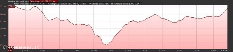 Il resto del percorso su strade bianche è piuttosto agevole anche se caratterizzato da un discreto saliscendi. In questa parte di tragitto è possibile effettuare foto su territori non molto sfruttati dagli appassionati di fotografia, attraversando una zona non molto frequentata.