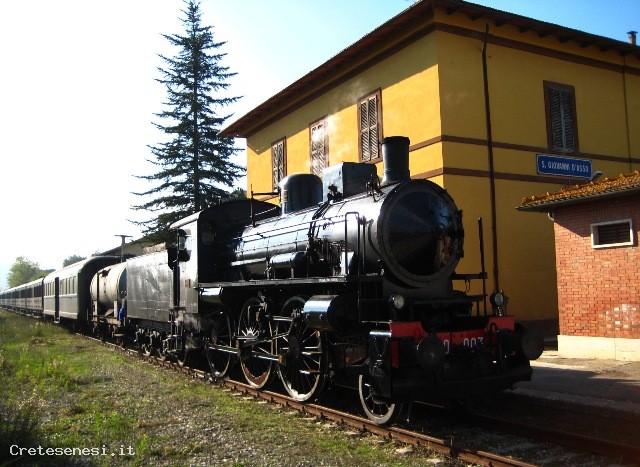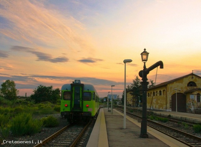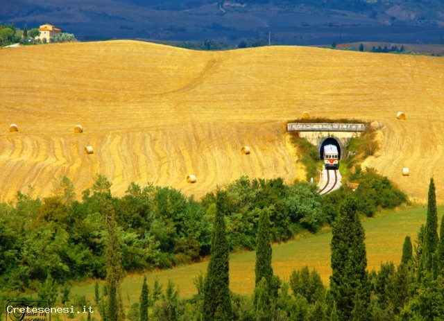The railway winds along the valleys of the River Ombrone and its tributaries: the Arbia and Orcia, one of the most beautiful areas of Tuscany and of great natural, historical and scenic. The train runs through the valley of the fact the famous Crete Senesi and the Val d'Orcia and then lick the territory of Montalcino, famous for its Brunello wine in Siena and return along the banks of the Ombrone and Arbia. In this last section, the train touches historical places related to the route of the Via Francigena Buonconvento Lucignano d'Arbia, the Grange of Cuna and others of lesser importance.