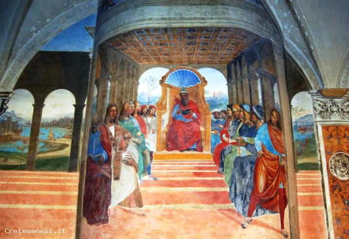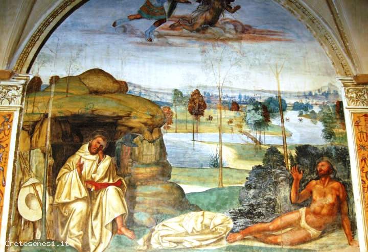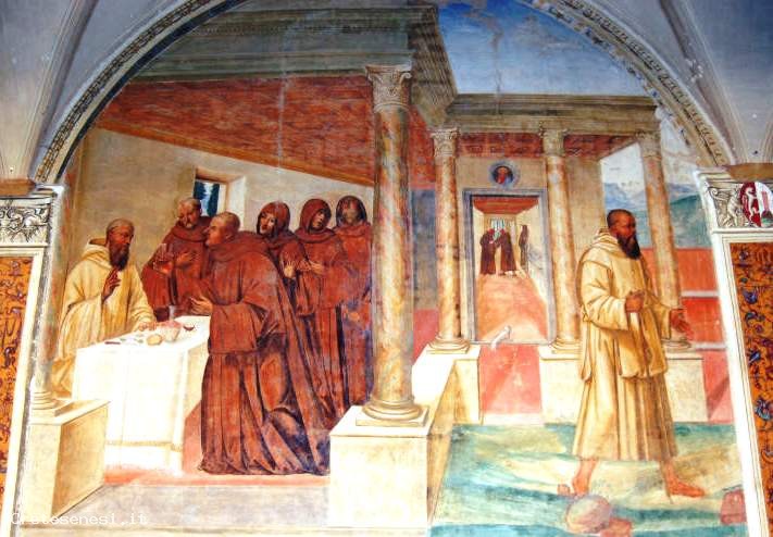 The frescoes attributed to Sodom were made ​​over three years and are considered the ultimate expression of the artist's mature pictorial. The assignment was given by the monks Olivetani after he had painted on their behalf, among them 1503 and 1504, the refectory of the monastery of Sant'Anna in Camprena.