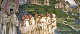 14 - Come Benedetto pregato dai monaci produce l'acqua dalla cima di un monte Asciano