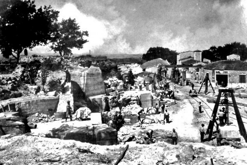 Gli incidenti, come testimonia questa immagine, non derivavano solo dal tipo di lavoro ma anche dal grande numero di addetti, presenti contemporaneamente all'interno della cava.