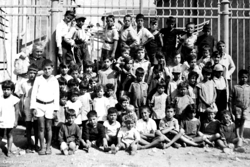 1930 ? - Bambini e ragazzi davanti al cancello del mercato Asciano