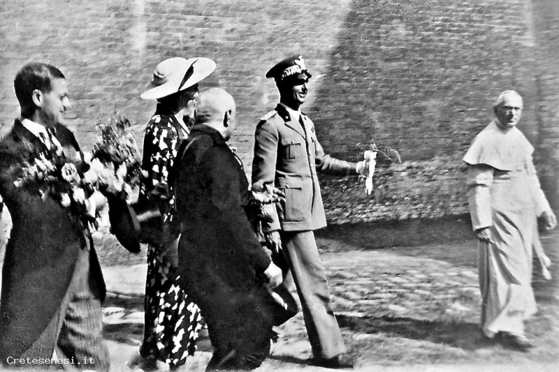 Visita del Principe Umberto di Savoia con la consorte Maria Josè in occasione della loro visita a Monte Oliveto Maggiore.