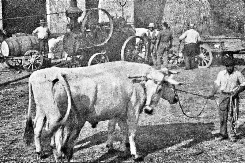 1944 - I buoi da traino per il trasporto del grano trebbiato Asciano