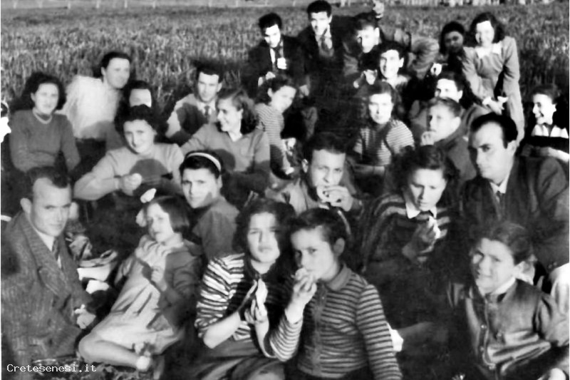 Tante facce note di giovanotti e signorine trasferitisi nei campi adiacenti la Stazione di Asciano Scalo, dove allora si usava andar a far merenda per Pasquetta e per il 1° maggio.