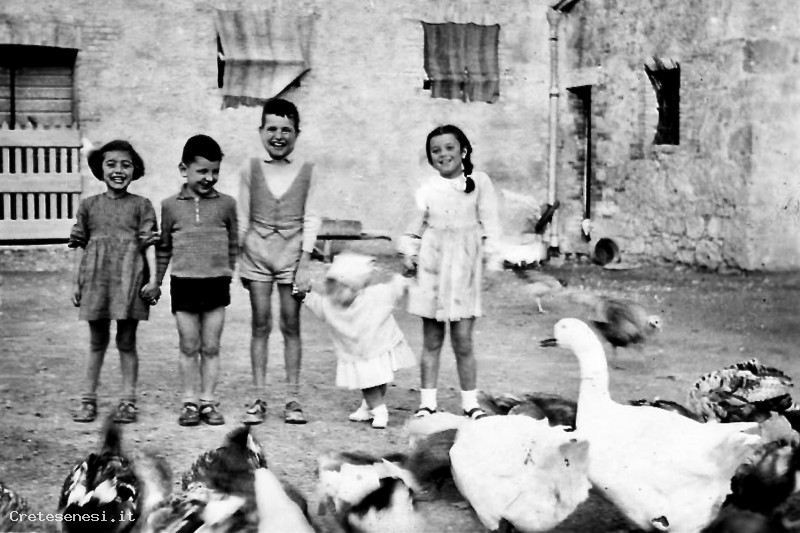 1952 - Bambini e animali nell'aia del Palazzo Asciano