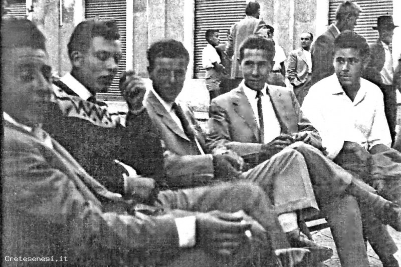 Seduti in piazza al bar di Hervè, conversando e guardando chi passa, si ricinoscono da sinistra: