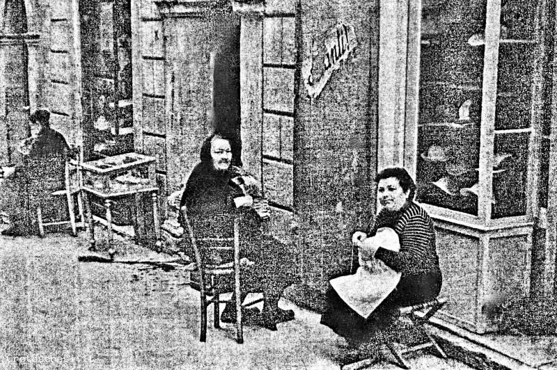 Nella foto, oltre alla Cappellaia Beppa Ghini, si vedono: l'Angiolona Fregoli che esponeva e vendeva fiori dentro l'ingresso della propria abitazione e Nella del Gobbo che, subito sotto, aveva un negozio di frutta, verdura e chicchi per bambini.