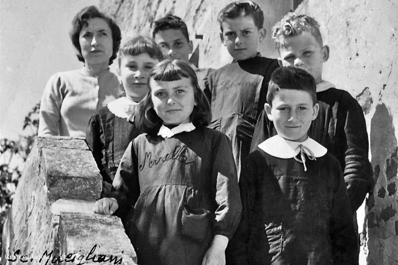 A parte la maestra Maria Vinci, non conosciamo l'identità degli scolari, salvo i nomi di Silvano e Mirella, ricamati sul grembiule nero.