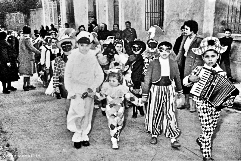 1958 - Carnevale dei bambini che escono dalle scuole vecchie Asciano