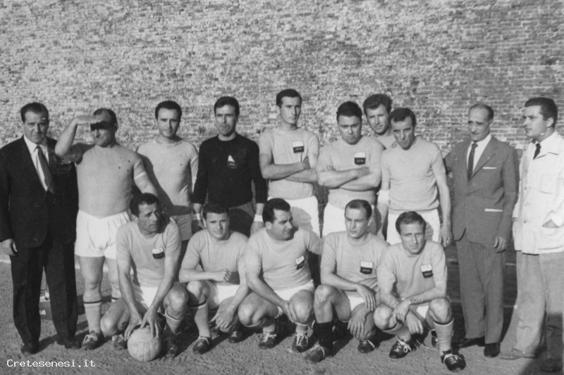 Negli anni cinquanta, se non ricordiamo male, alcuni giocatori di Asciano furono dati in prestito alla squadra del Siena, che non sappiamo in quale categoria militasse. La foto da concretezza a questo lontano ricordo, evidenziando due giocatori ascianesi nel gruppo: