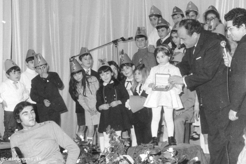 La bambina premiata dovrebbe essere Simona Gallorini che ha cantato "Avevo un gatto nero" ed è premiata da Renato Lucatti, Direttore Didattico.