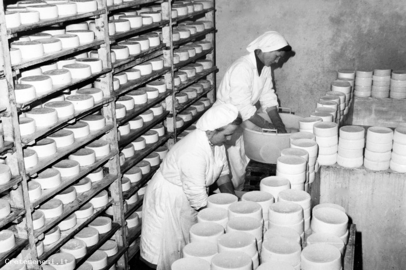 Nella foto, due donne ascianesi svolgono l'attività sopra descritta, all'interno del locale Caseificio.