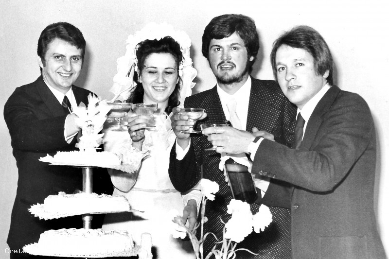 brindano, al termine del pranzo di nozze, con i testimoni:
