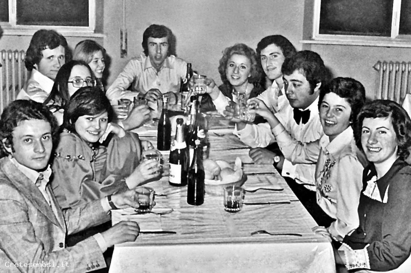 Tavolata di capodanno al Teatro Verdi di serre con tanti ascianesi allora molto giovani e oggi intorno ai 60.