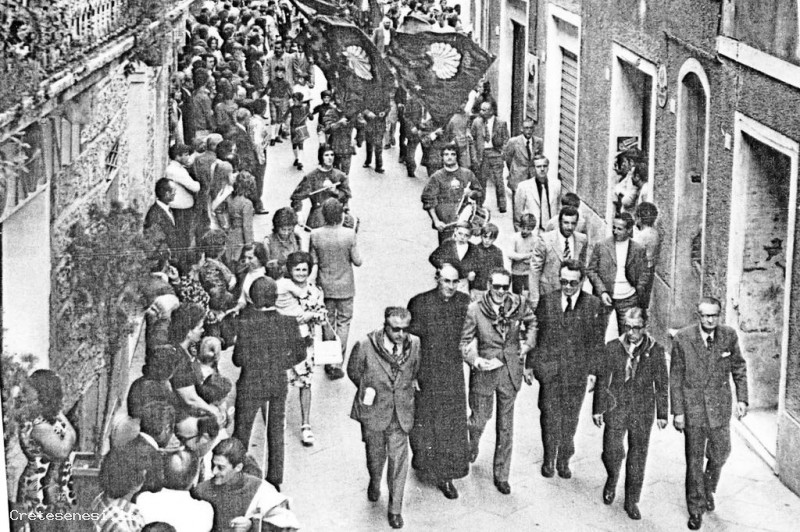 1974? - Gemellaggio con Contrada del Nicchio - Sfilata nel corso Asciano