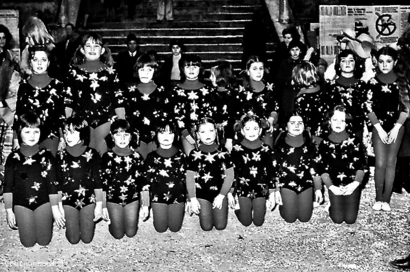 Le bambine che partecipano ad un saggio di ginnastica organizzato dall'insegnante Marzia Giulianini, partendo da sinistra in alto: