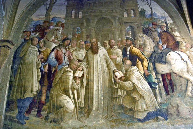 This is perhaps the most modest of all those frescoes of the cloister and the only one made by Bartolomeo Neroni, Riccio said. On the right panel inscription recalls the view here taken by Charles V in 1536.