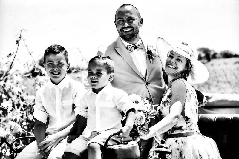 La nuova famiglia Mazzei al completo, in carrozzella il giorno del matrimonio: