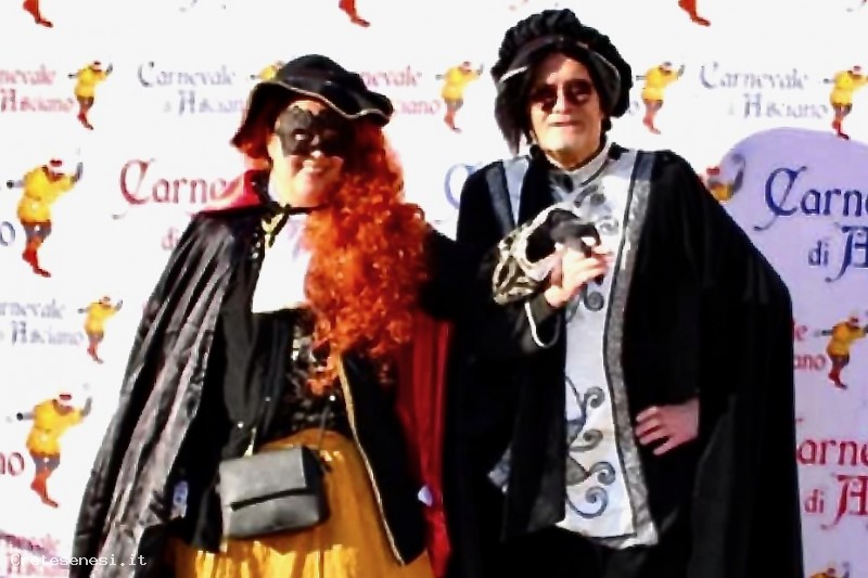 Una coppia di maschere posa per il concorso della Proloco con perfetti costumi di epoca seicentesca.