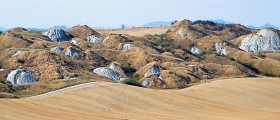 Starting from a crossroads marked by a bald cypress and a temporary deposit of straw presses that can be reached by car passing the castle of Leonina, after having easily parked, you walk towards a lunar landscape that is unique in the world.