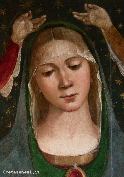 This altarpiece of the Madonna della Misericordia in the company of San Bernardino and San Sebasiano, after a first allocation to the Sienese Pietro di Domenico, is then recognized as the work of Signorelli. The board seems to have been painted immediately before (1487-1494) the completion of the cycle of frescoes in the Cathedral of Orvieto. Its original location seems to have been the headquarters of the Society of Mercy of Montepulciano. Originally it was to be linked to the dais in the Uffizi, in which are depicted: The Annunciation, The Adoration of the Shepherds and the Adoration of the Magi, as documented from Montepulciano. The not excellent quality of the implementation of the angels is interpreted as the work of employees of the master's workshop. In addition, the loss of gloss in some parts of the work is attributable to a long period of poor preservation of the table.