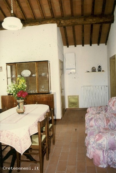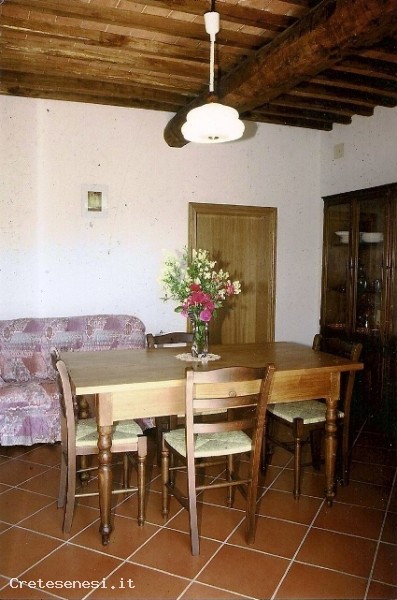 The farmhouse is situated in a suggestive landscape of the Crete Senesi, in a quiet and panoramic position, near the Abbey of Monte Oliveto Maggiore. Besides cereals, in our farmhouse we also produce olive oil and cheese, following the method of biological agriculture. There are 3 apartments from which you can enjoy a beautiful view of Mount Amiata. Plain style, country furniture. Ideal place for visiting the area, rich in famous artistic and historical centres like Siena, Montalcino and Pienza and for following well-known eno-gastronomic itineraries for tasting the renowned wines and typical Tuscan dishes.