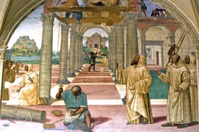 24 - Come Benedetto resuscita lo monacello cui era caduto lo muro addosso