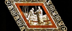 You see Obadiah who brings the message of Elijah to King Ahab, inviting him to meet the Prophet in place (I Kings, 18, 16). This scene is Beccafumi and belongs to the unique diamond sixteenth survived the hex center.