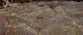 A destra si dispiega la campagna, dove merci e persone viaggiano in sicurezza, la terra fertile viene coltivata, i giovani vanno a caccia, mentre in aria vola la personificazione della Sicurezza, che regge un delinquente impiccato e un cartiglio.