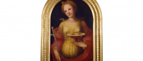 The painting depicting "Saint Lucia" was part of a small catalog commissioned to Domenico Beccafumi in 1521 by the Sienese Company of Saints Niccolò and Lucia. The cataletti were real funeral beds with which the corpses of the deceased were transported from the church to the cemetery: in Siena and its territory met the use of painted cataletti, bearing at the ends two tables with representations of a sacred character . The catalog of the Compagnia dei Santi Niccolò e Lucia remained in use until 1624, the year in which it was donated by Ferdinando II to the Grand Duke of Tuscany: from that moment on, the traces of the individual newspapers were lost, of which only one, the one depicting "Santa Lucia ”, still testifies to the very high quality of execution that was to characterize the object. The young Saint is presented to the devotion of the faithful with the attributes that have characterized the iconography over the centuries: Lucia holds in her right hand a dagger, an instrument of martyrdom, and supports with her left hand a small elevation on which two eyes are placed, symbols that refer to the martyrdom to which Lucia was subjected. The work of one of the greatest interpreters of the Renaissance and of the Italian manner, Saint Lucia allows us to grasp the unfolding of that phase of Domenico Beccafumi's artistic journey which marks the passage from the most ancient formation that took place on the examples of Raphael towards the acquisition of a language new, aimed at the free and fantastic interpretation of the figurative canons of the Renaissance, typical of the artist's maturity. The graceful pose, classically balanced by the harmonious contrast of the body's limbs, is accompanied by the treatment of color which, similar to liquid matter, flakes the shapes and lights up the composition of bright notes and flashes of light.
