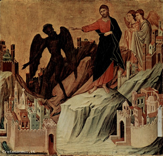 Maestà, pala d'altare di fronte Duomo di Siena,tempera ad olio, 43 × 46 cm.