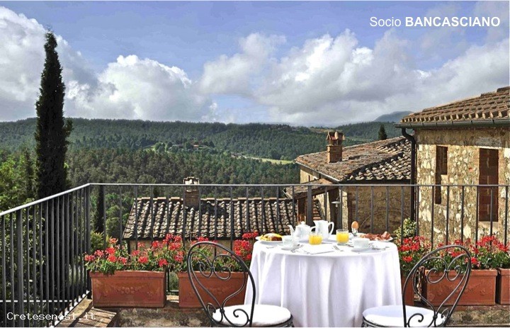 Borgo “Casabianca” offers 3 rooms and 6 suites . The eighteenth-century-owner’s villa is made up of 3 rooms and 6 suites of the hotel, some of which keep till today frescos of the XIX century. The 20 apartments ( with a total of 30 rooms) are all furnished with country Tuscan furniture and projected to satisfy at best the taste and the demands of each guest. On the inside and around the villa, the atmosphere changes and offers occasional meeting points to taste a good wine with tasty snacks. From the hotel the glance can widely sweeps over the splendid Tuscan country: towards Montalcino’s hills, the Mount Amiata, the Crete and Siena.