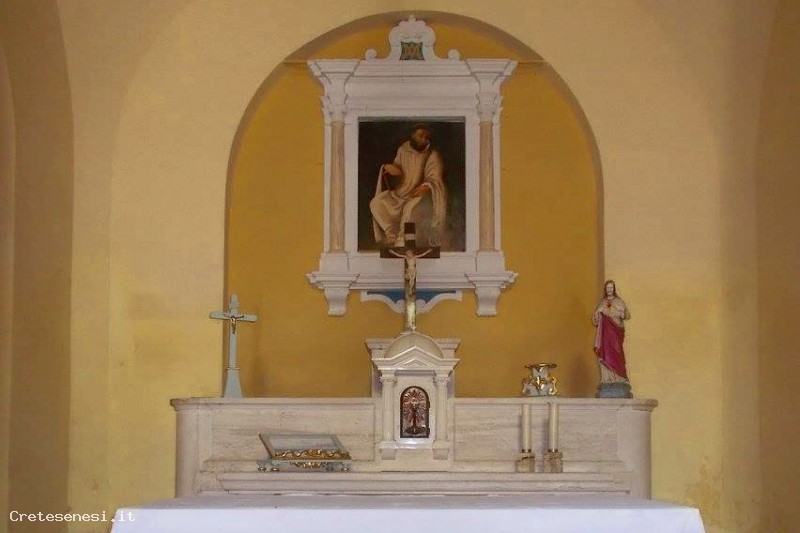 The small church is part of a group of houses in the village of Poggio Pinel. Externally it has a gabled profile: the elements that make up the facade, which is the base, the portal architrave and the rectangular window are all made of travertine, the local stone that is mined in the immediate vicinity of the place.