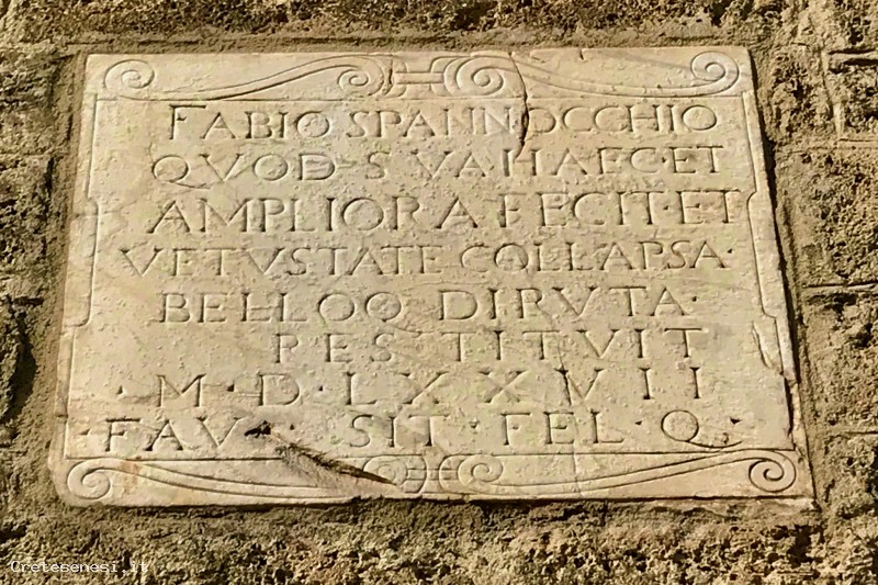 The mansion Palazzo Spannocchi, in the Prato zone, sits where once the Loreto Way split into two roads. One road led to San Giovanni d’Asso. The other led through a plain to the granary (grancia) in Serre (di Rapolano), an important marketplace for the produce grown nearby. Certainly dating from late 15th century, the mansion was a posting station for merchants and pilgrims to rest and change horses. In the second half of the 16th century, it became property of the Spannocchis, who extended it to be their local residence and warehouse.