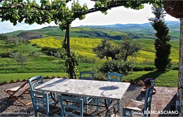 Podere Finerri is a 1700’s farmhouse with breathtaking views over the Siena hills, totally surrounded by fields of wheat, vineyards and olive groves. Finerri’s olive grove produces organic olive oil.