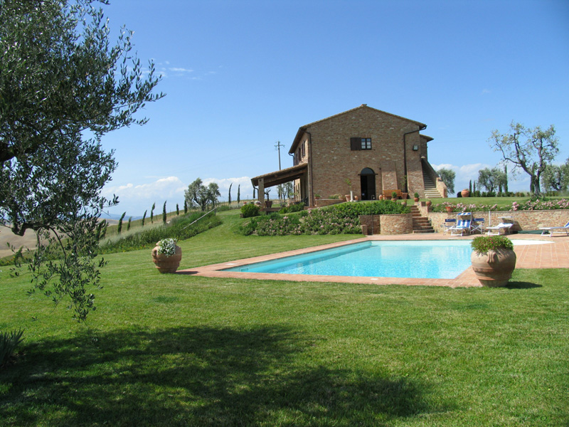 “Podere Fornaci” is an ancient farmhouse of the nineteenth century, dipped into the heart of Crete Senesi, completely restructured by the present owners. The apartments reserved to our guests are well-furnished and provided with all kind of comforts. The structure has a privileged position on the top of a hill, from which you can enjoy a splendid view over the surrounding country. The wide stretches of waving hills, alternated to calanques, are changeable places and they appear different according to the period of the year. This is the right place for spending a relaxing holiday. Not far away, there are the Chianti’s vineyards, Siena ( only 19 km far), San Gimignano Montalcino, Montepulciano, Pienza, Cortona and the spa facilities of Rapolano Terme. All the apartments have an external space, equipped with chairs and tables for outdoors meals. The garden is equipped with barbecues at our guests’ disposal. Inside the farm, about 50 hectares completely enclosed, you can go for a walk or go fishing in a lake in the bottom of the valley.