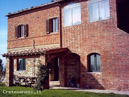 6 km from Asciano, situated on a hill, which dominates the landscape of Crete Senesi, it is in the middle of olive trees and woods, rich in mushrooms and truffles. The farmhouse, carefully restored with due respect of traditions, used fired brick and travertine, it offers a splendid 360° panorama, which gives back the sense of freedom to the spirit. The ancient country-cottage is independent and quiet, it includes a walling kitchen, a living-room with fireplace, TV and travertine bathroom: everything is brand new and comfortable. The farm offers charcuteries and typical cheeses, oil, honey, jams and biological home-made food, besides excellent wines such as “ Brunello” of Montalcino, “ Chianti” and “ Nobile” of Montepulciano.