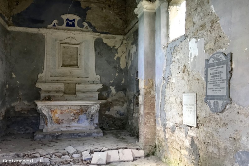 The families that dominated the local agricultural scenario, until the Second World War, used to build in their territories a family chapel where, in addition to the carrying out of private religious rites, the owners were buried at the time of the passing.