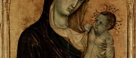 La composizione ha lo stesso motivo e gli stessi ritmi della Madonna di Crevole ma evidenzia un naturalismo più genuino nel rapporto fra il Bambino e la Madonna. Anche la forma, per una leggera tendenza alla dilatazione, distingue il presente dipinto dalla prima Madonna, mettendolo in relazione alla pittura di Giotto. Questo farebbe presupporre un rapporto con la contemporanea esperienza giottesca e, quindi, pensare (Brandi, 1947; Carli, 1952 ed altri) ad una cronologia molto più avanzata, intorno al periodo della Maestà (370 x 450 cm., Duomo di Siena, anno 1308-11).