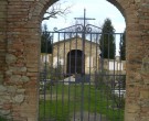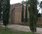 The parish of Saint Innocenza in Piana is a sacred building near Buonconvento. Mentioned since 1081, it is a fortified structure which still keeps the characteristic elements of the military sienese architecture of the XIII-XIV century; one of its sides is the church, which has been made in fired-brick, like most part of the complex, but with stone-lines in the simple front. It has only a nave with trusses in sight, but it already shows gothic elements in a quadrilateral chapel which ends it, covered with a barrel vault and pointed-arch monophores. On the inside there are traces of a fourteenth-century fresco with Saint Christopher and another fresco, always fragmentary, where there is again the figure of the Blessed Franco da Grotti.