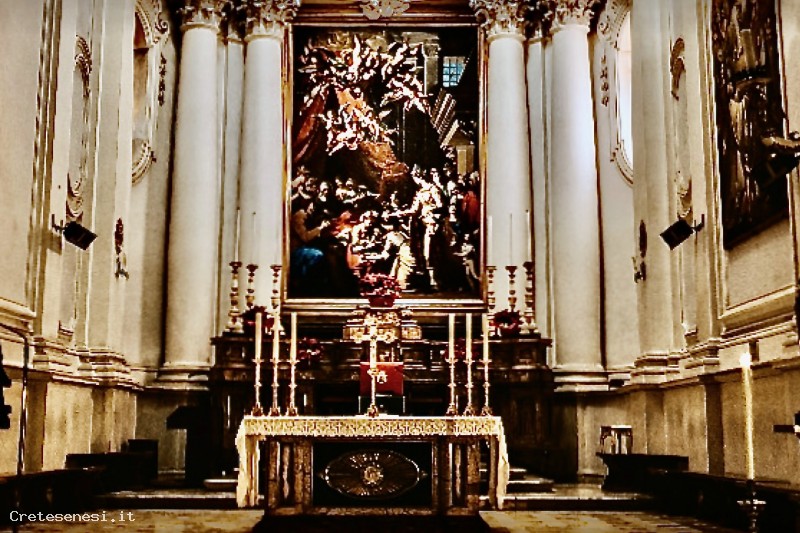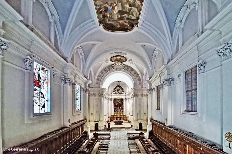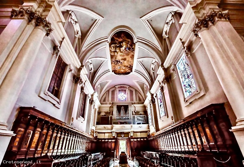 The Cathedral of the Nativity of Mary, annexed to the monastery of Monte Oliveto Maggiore, was built between 1400 and 1417 as a new abbey church. It is located on the north side of the convent building and connected to it through the large cloister.